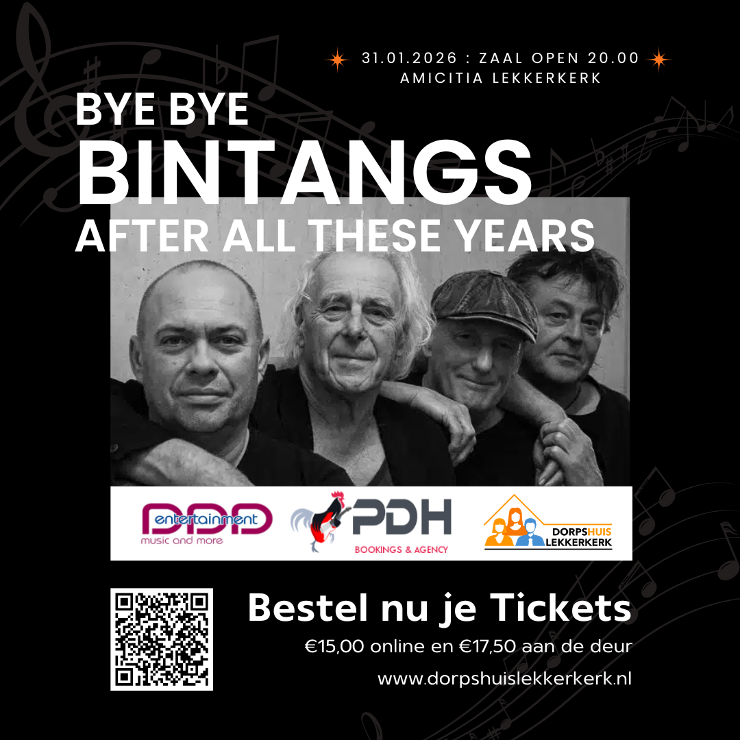 Kies het aantal tickets voor Bye Bye Bintangs – after all these years op 31-1-2026